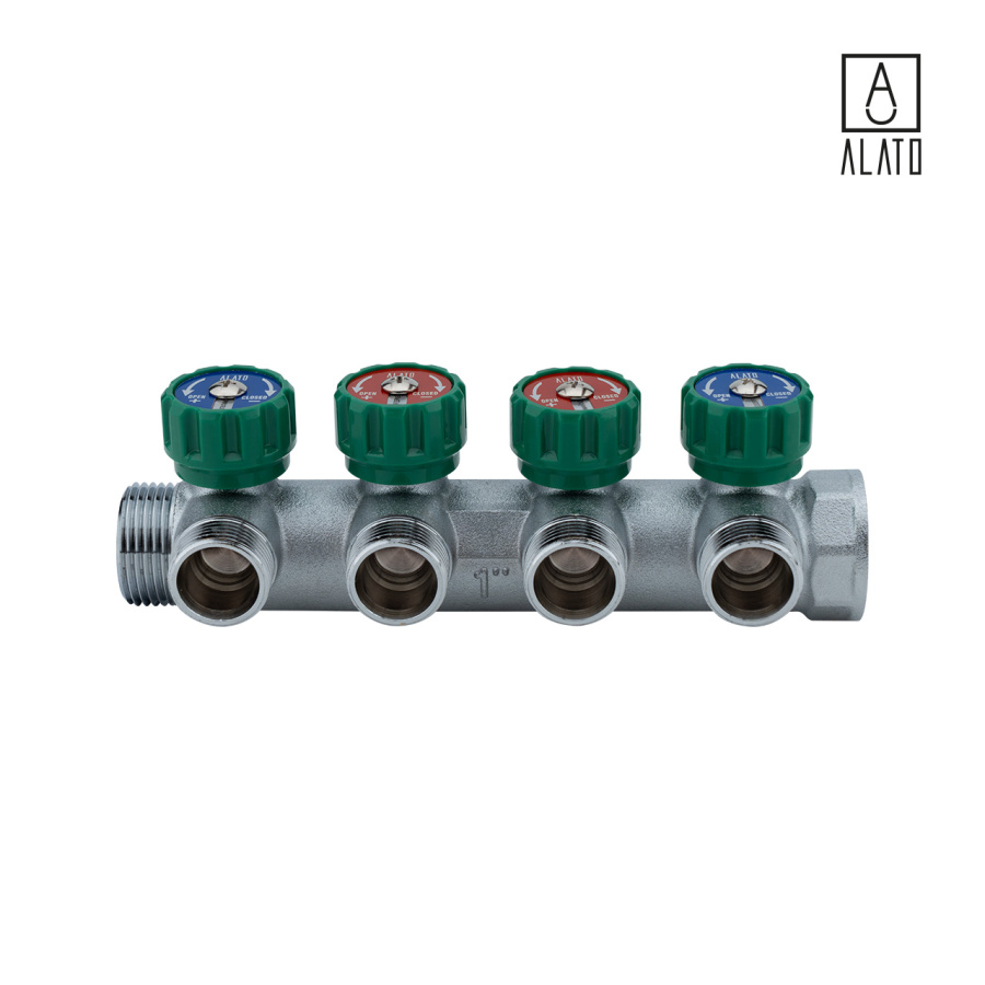 Регулирующий коллектор ALATO под плоское уплотнение 3/4"ВР х 4вых х 1/2"НР х 3/4"НР