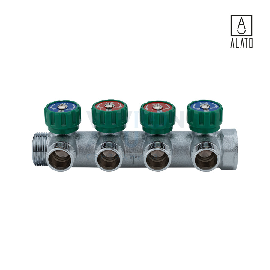 Регулирующий коллектор ALATO под "евроконус" 1"ВР х 4вых х 3/4"ЕК х 1"НР