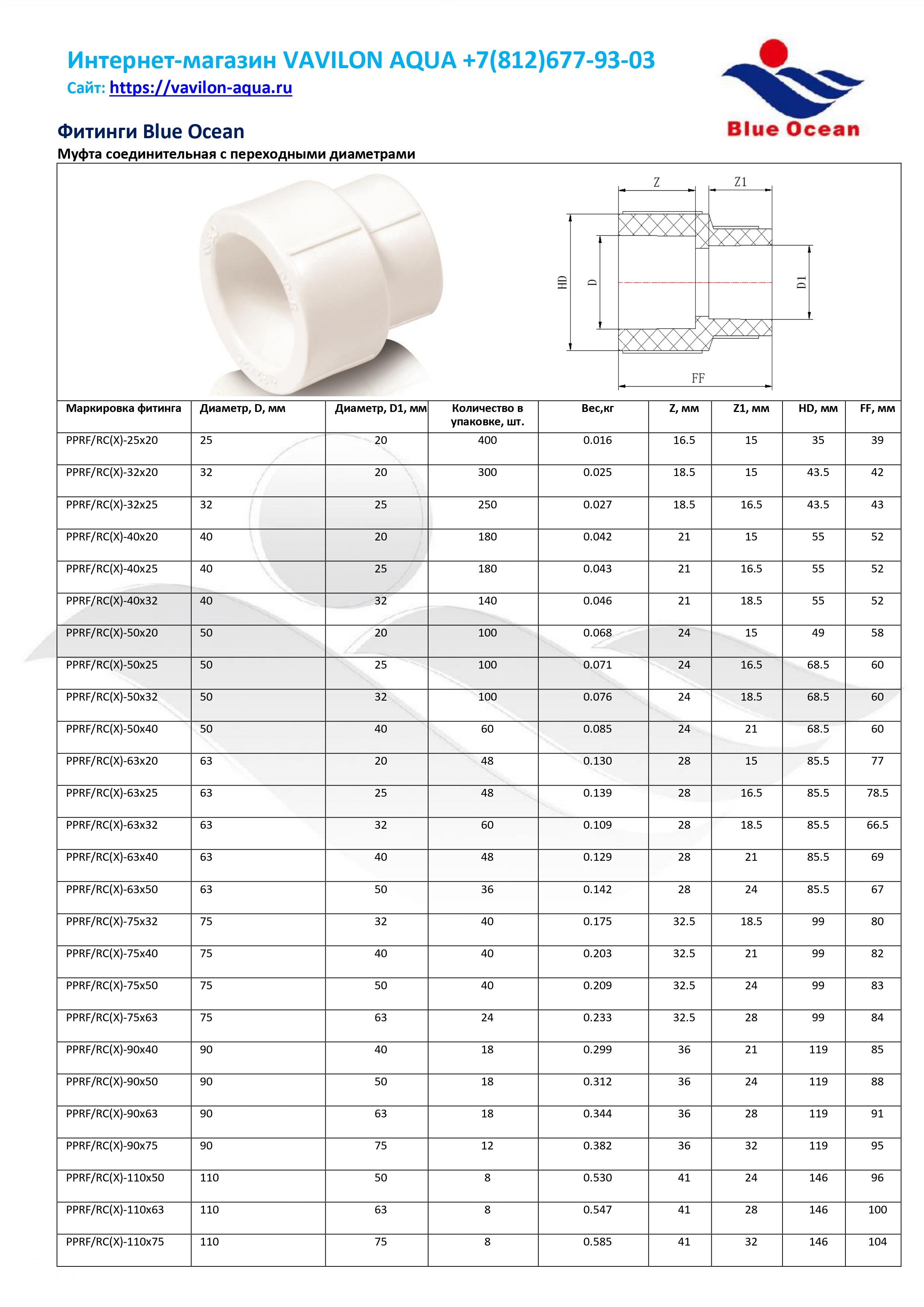 Муфта переходная Blue Ocean - 90х50 (1/6/18)