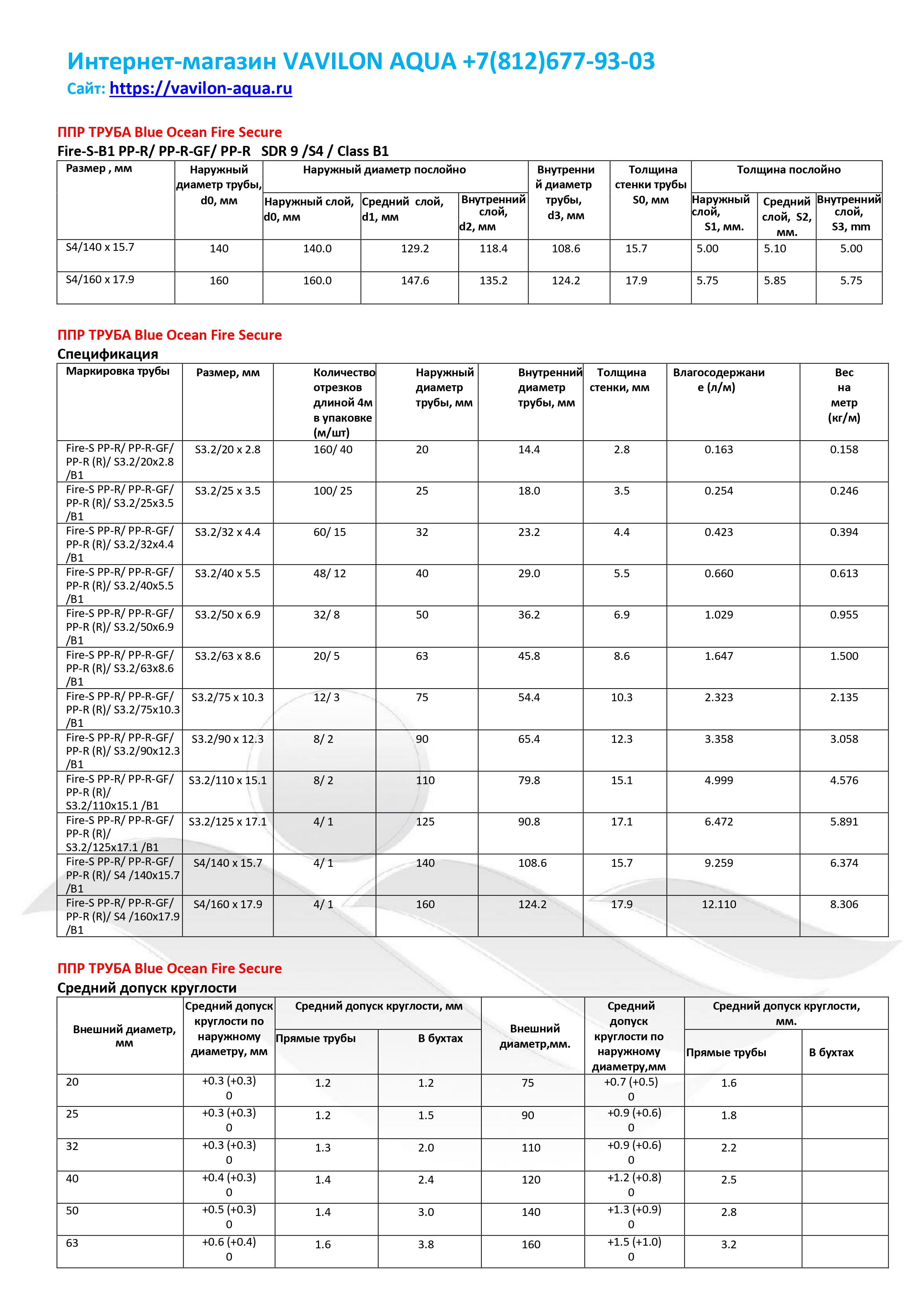 Труба противопожарная из огнестойкого полипропилена 50 Blue Ocean для водонаполненной спринклерной системы пожаротушения.